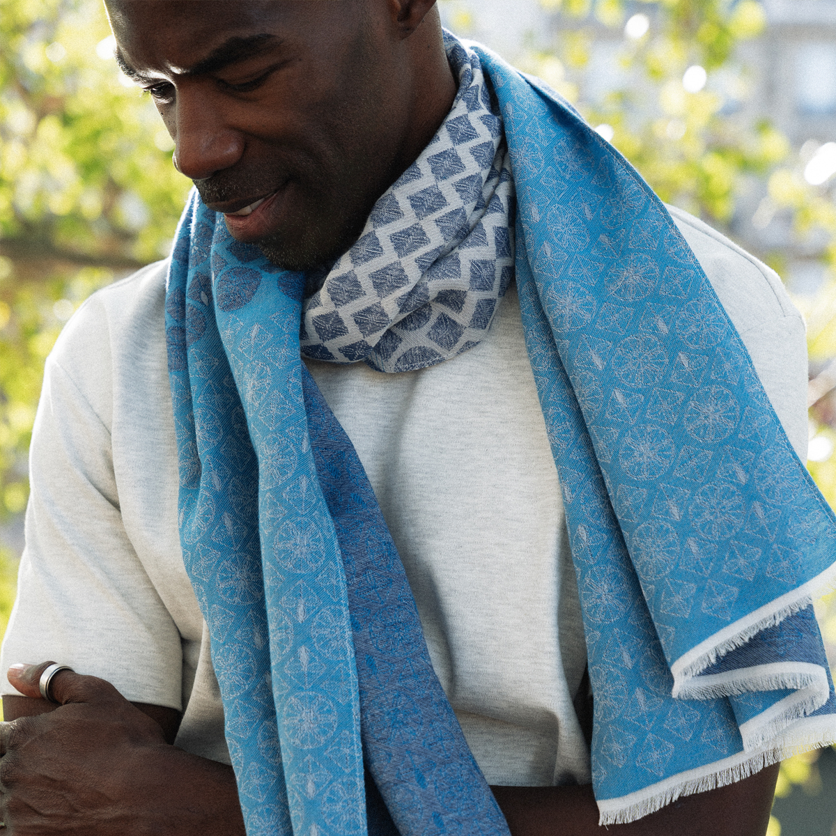 Nous vous avons réalisé cette écharpe dans la plus pure tradition du tissage jacquard dans notre atelier, pour un résultat parfait grâce à un savoir-faire transmis de génération en génération depuis 1880.