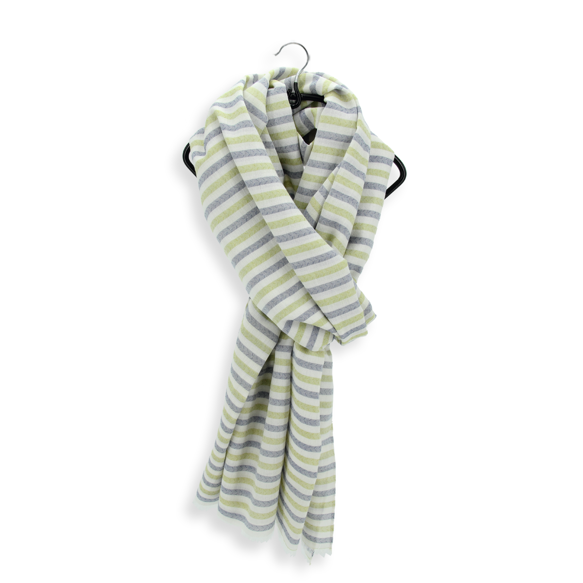 Pour améliorer en plus le touché de cette étole, nous avons assouplis les fibres après le tissage par un lavage spécialement étudié pour adoucir le tissu et accentuer sa résistance.