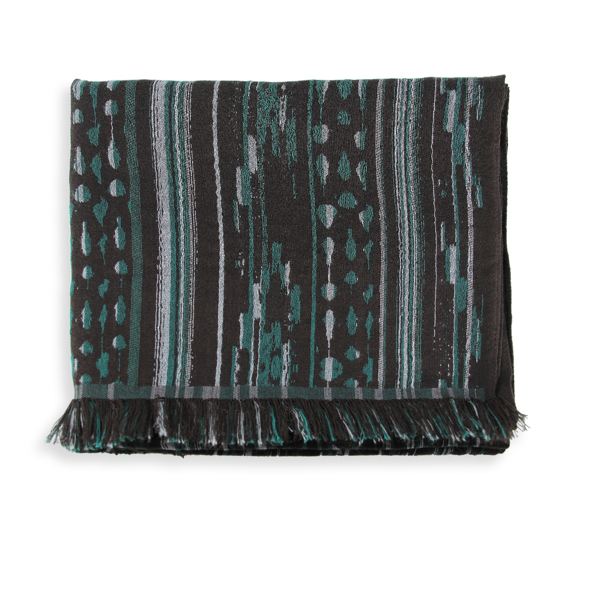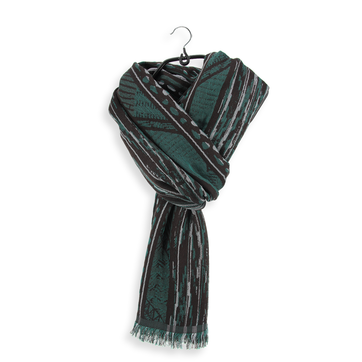 Belle et longue écharpe mixte extra douce grâce à sa composition de laine mérinos soie et coton. Elle est chaude et confortable pour affronter les grands froids. Son motif en pointillés brouillés est réversible et donne un aspect moderne à cette écharpe. Son coloris marron foncé chocolat, vert jade avec une pointe de gris clair est idéal pour compléter un look chic et rehausser une tenue décontractée. Cette écharpe aussi bien homme que femme est tissée avec le plus grand soin dans notre atelier de Lyon-France