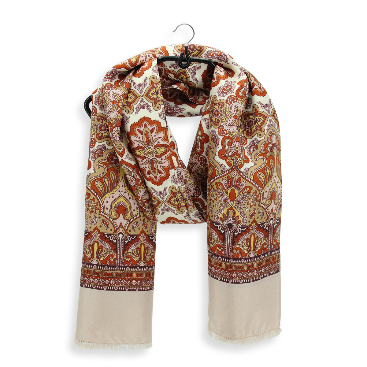 ECHARPE SOIE BIO IMPRIMEE MARRON - ELEGANCE