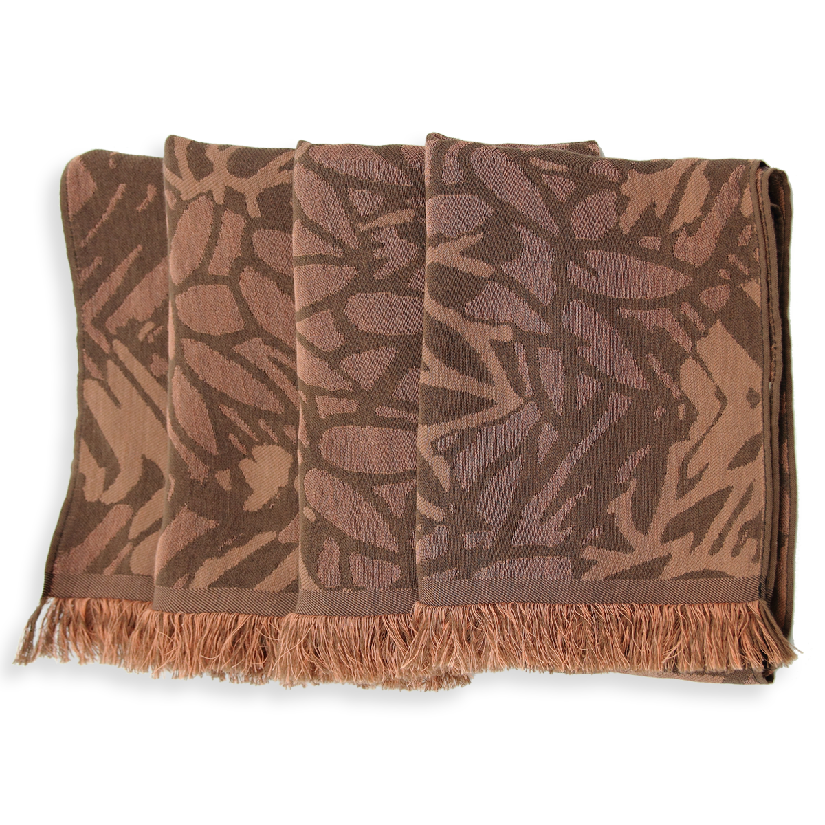 La technique du tissage façonné utilisée pour fabriquer cette écharpe, est l’entrecroisement de fils de chaine en soie et de fils de trame en laine Mérinos suivant un motif spécifique. Pour ce faire, l’atelier de tissage de « La Fabrique d’écharpe » possède des métiers « Jacquard ». Le métier « Jacquard » est un métier à tisser mis au point par le Lyonnais Joseph Marie Jacquard en 1801, premier système mécanique programmable avec cartes perforées pour produire des motifs par le croisement de fils couleurs. Grâce à un savoir-faire transmis de génération en génération depuis 1880, nous avons aujourd’hui des métiers à tisser « Jacquard » électroniques à commandes numériques qui vous garantissent la parfaite qualité de nos étoffes tout en respectant la plus pure tradition lyonnaise.