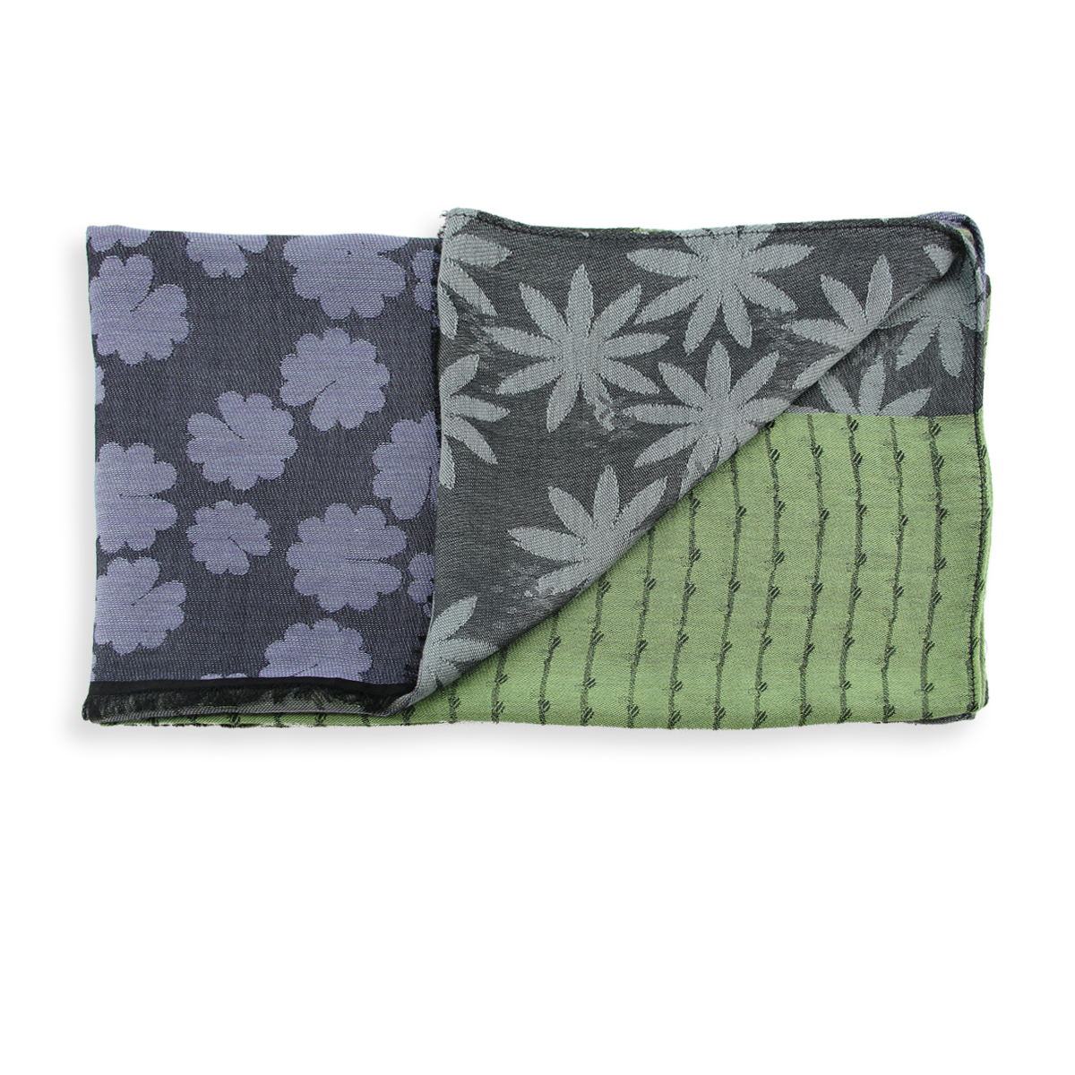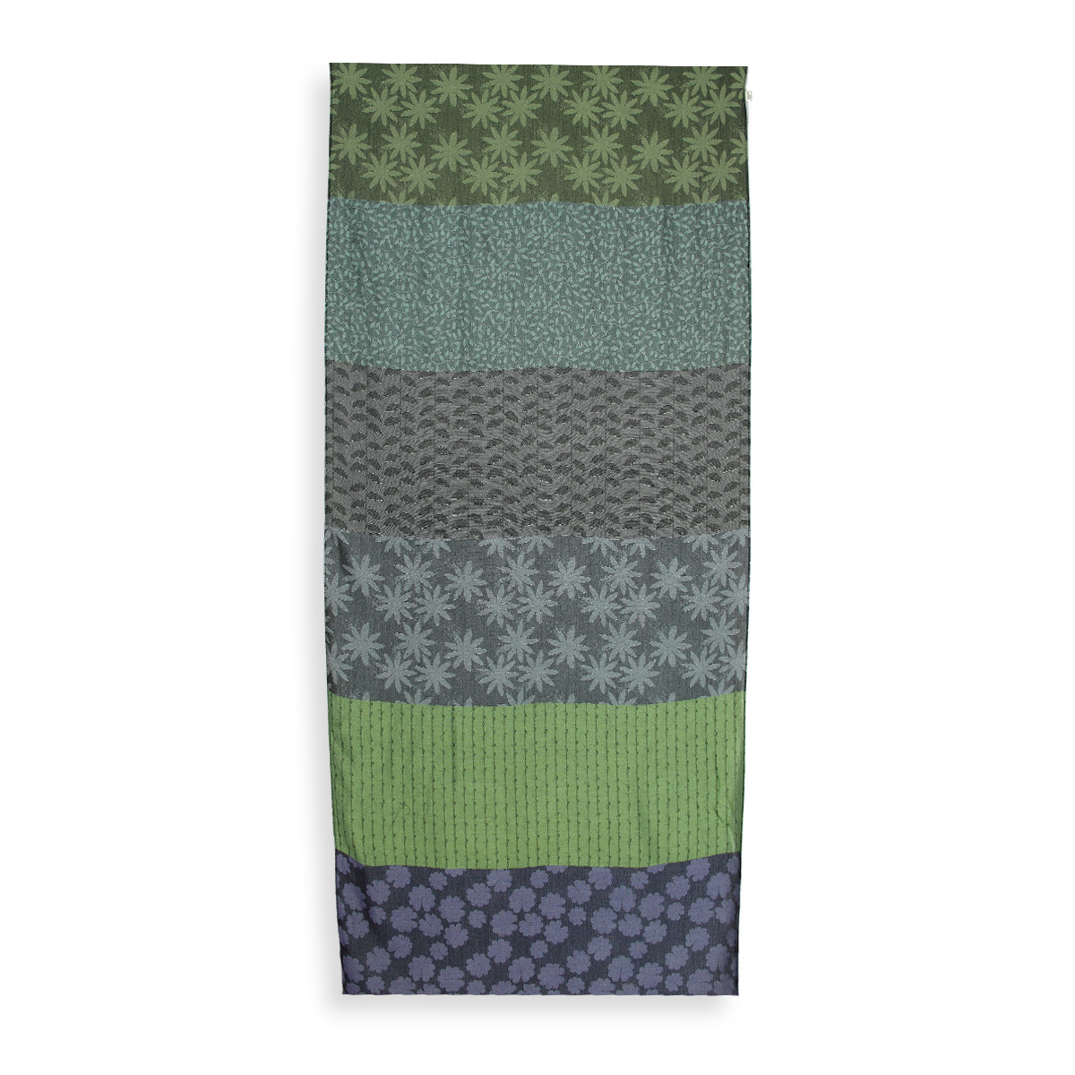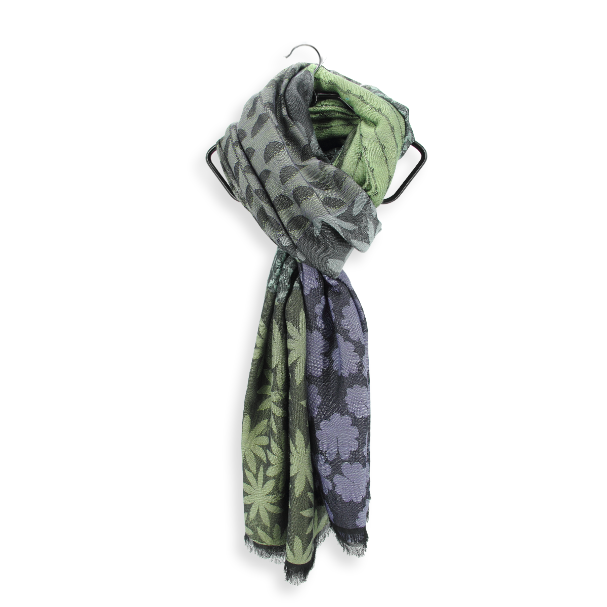 A partir de notre bibliothèque de dessins, nous avons combiné 6 motifs dans le thème fleuri pour réaliser cette étole. Fleurs, pétales, tiges et bambous sont les dessins répartis de façon égale sur toute la longueur de notre grande écharpe « Jeannette ». Chacun ayant son coloris, le résultat est innovant et créatif pour mettre en valeur votre style. Ici, le visuel de couleur est entre le rose lavande et le vert anis, en passant par une touche d’aqua.