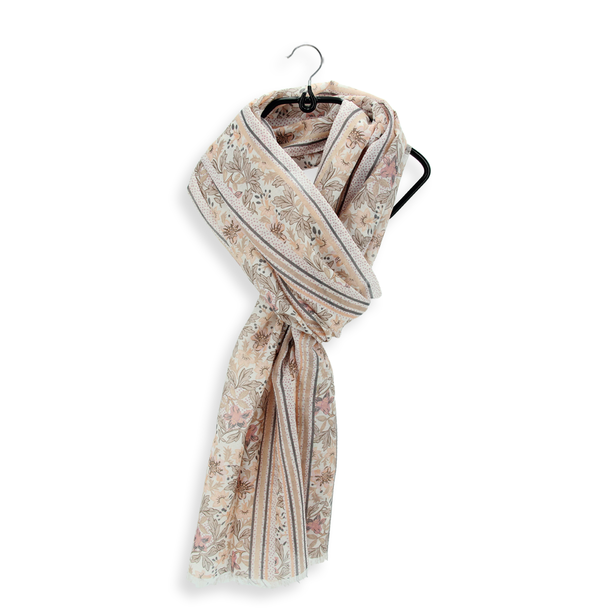 La fabrique d'écharpe / Les echarpes / COTON / FOULARD COTON SOIE BEIGE - JARDIN