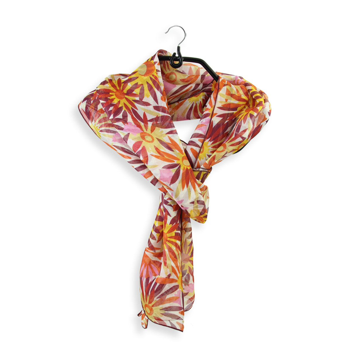 Au quotidien, ce foulard peut être porté avec des ensembles clairs (beige ou écru) ou sombre (marron, marine ou noir). Dans les deux cas, cette écharpe apporte de la couleur tout en restant discrète et lumineuse.