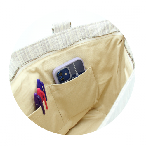 Sur le thème campagne, 3 motifs inspirés des émojis que vous utilisez dans vos messages électroniques agrémentent et illuminent le devant du sac par des couleurs vives. Le tissu du sac en matière recyclée est composé de petites rayures écru/gris/argent pour un fond élaboré mais néanmoins facile à assortir. Imaginez votre texte que nous brodons dès réception de votre commande dans notre atelier lyonnais. Vous pouvez choisir un prénom, une date, une petite phrase…..au maximum 32 caractères.