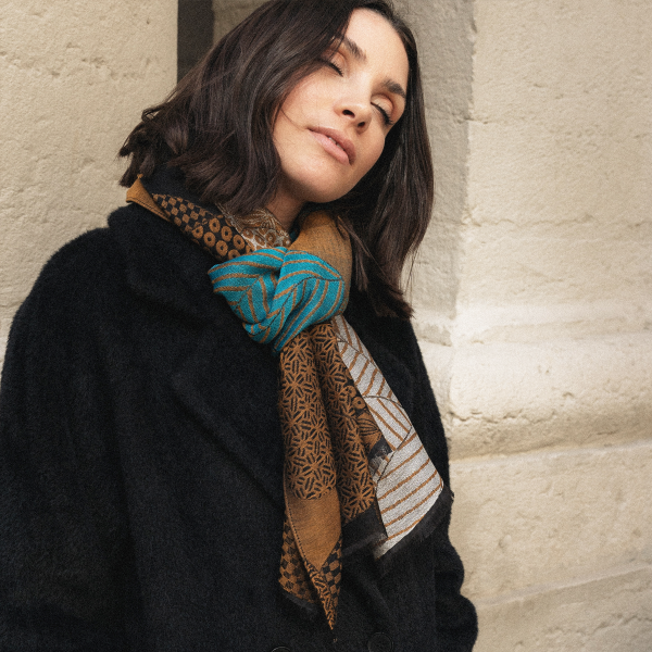 Pour un effet visuel étonnant, nouez votre foulard en soie sur votre manteau uni, choisissez un motif original et des coloris forts qui dévoilent votre personnalité, une matière moelleuse et chaude pour affronter le froid. L’écharpe devient alors la pièce maitresse de votre look! La Fabrique d’écharpe vous propose le modèle “Amie” pour femme, un grand motif floral placé dans des coloris chauds, terracotta, argile, gris à porter sur un manteau camel, le modèle “Ride” pour homme; parfait sur un manteau taupe, ou le modèle “Amour”, un motif graphique turquoise et ocre pour une touche de couleur sur un manteau noire.