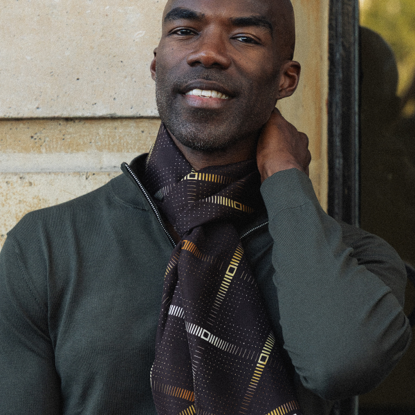 Le foulard soie homme devient alors un élément graphique fort. Les dessins aux couleurs vives ou contrastées sont particulièrement appréciés pour ce type de style, nous vous conseillons les motifs géométriques qui renforce l’impact visuel. Toutefois, il vaut mieux rester dans des colorations neutres pour éviter les fausses notes.